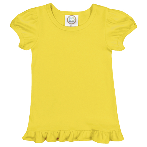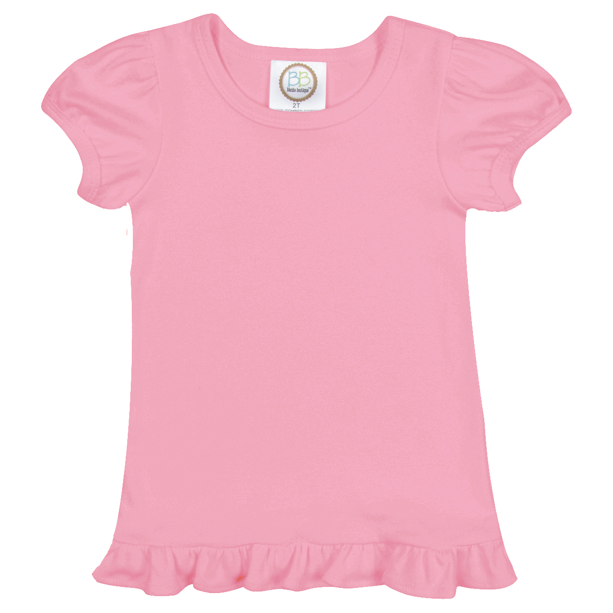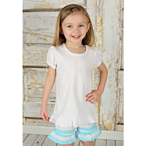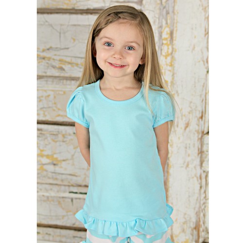 Our First Tee ever! This premium cotton knit girl's short sleeve ruffle embroidery tee is a customer favorite. Our best selling design with classic lines and detailed fit makes the perfect blank canvas for your next applique, embroidery, monogram or heat press project. With its flirty ruffle bottom and puffy cap sleeves, this adorable tee will be sure to add that feminine touch.