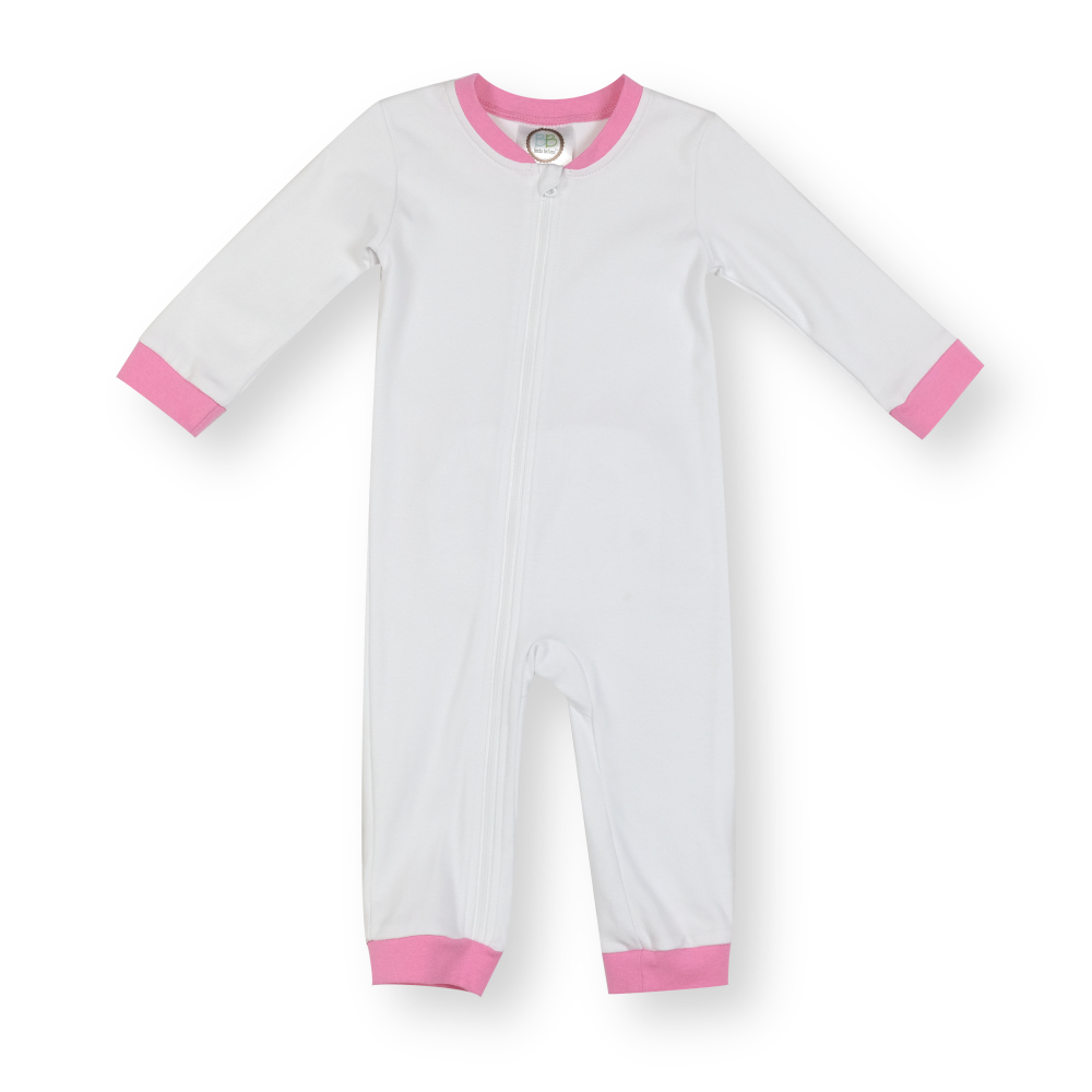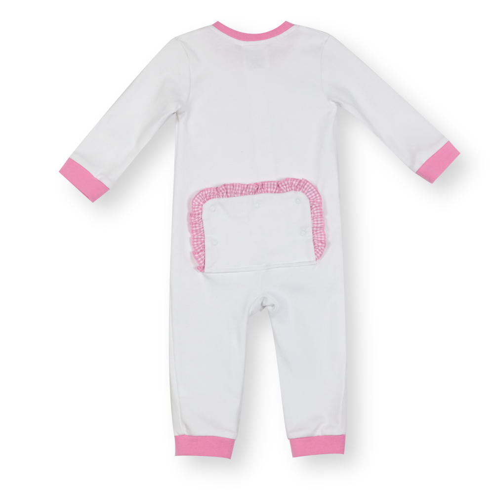 Our Blank Girl's Unionsuit features 100% combed knit cotton with a zip front and adorable Gingham Ruffle trimmed functional drop flap in the back! Simply add a monogram, applique, or heat press design to make a boutique Girl's outfit or gift!