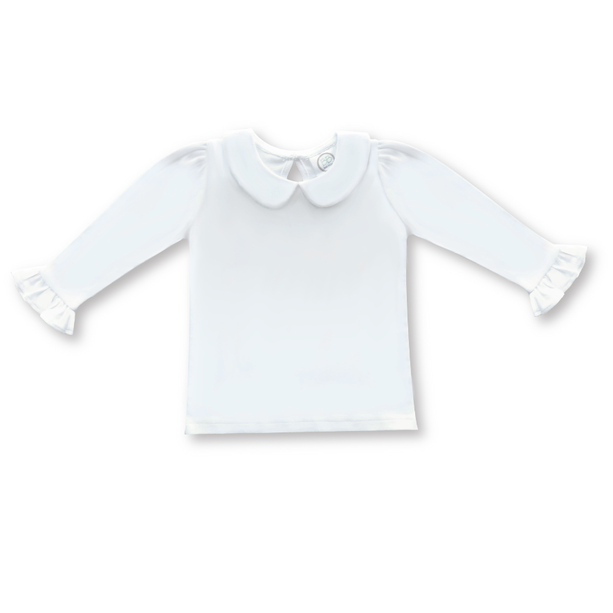 Our Girl's Long Sleeve Peter Pan Collar Tee is a classic boutique basic for your next embroidery or applique project!